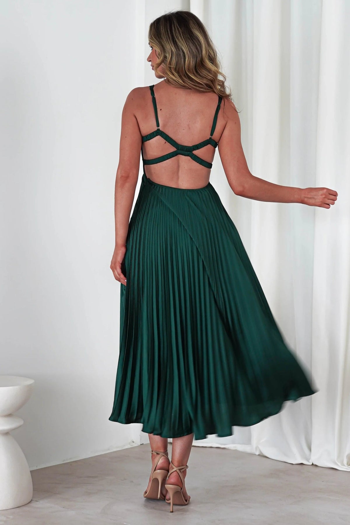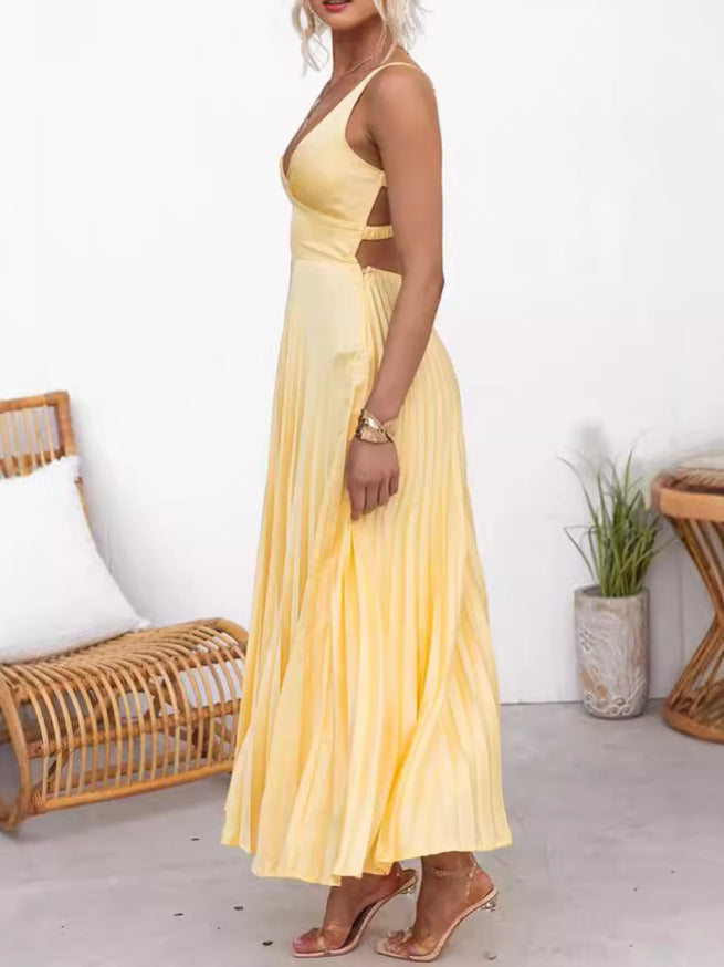 Irradia eleganza con questo abito lungo a pieghe, progettato con un raffinato scollo a V e una silhouette fluida. Dotato di spalline incrociate regolabili sulla schiena e un punto vita arricciato, è la scelta perfetta per ogni uscita raffinata o occasione speciale.