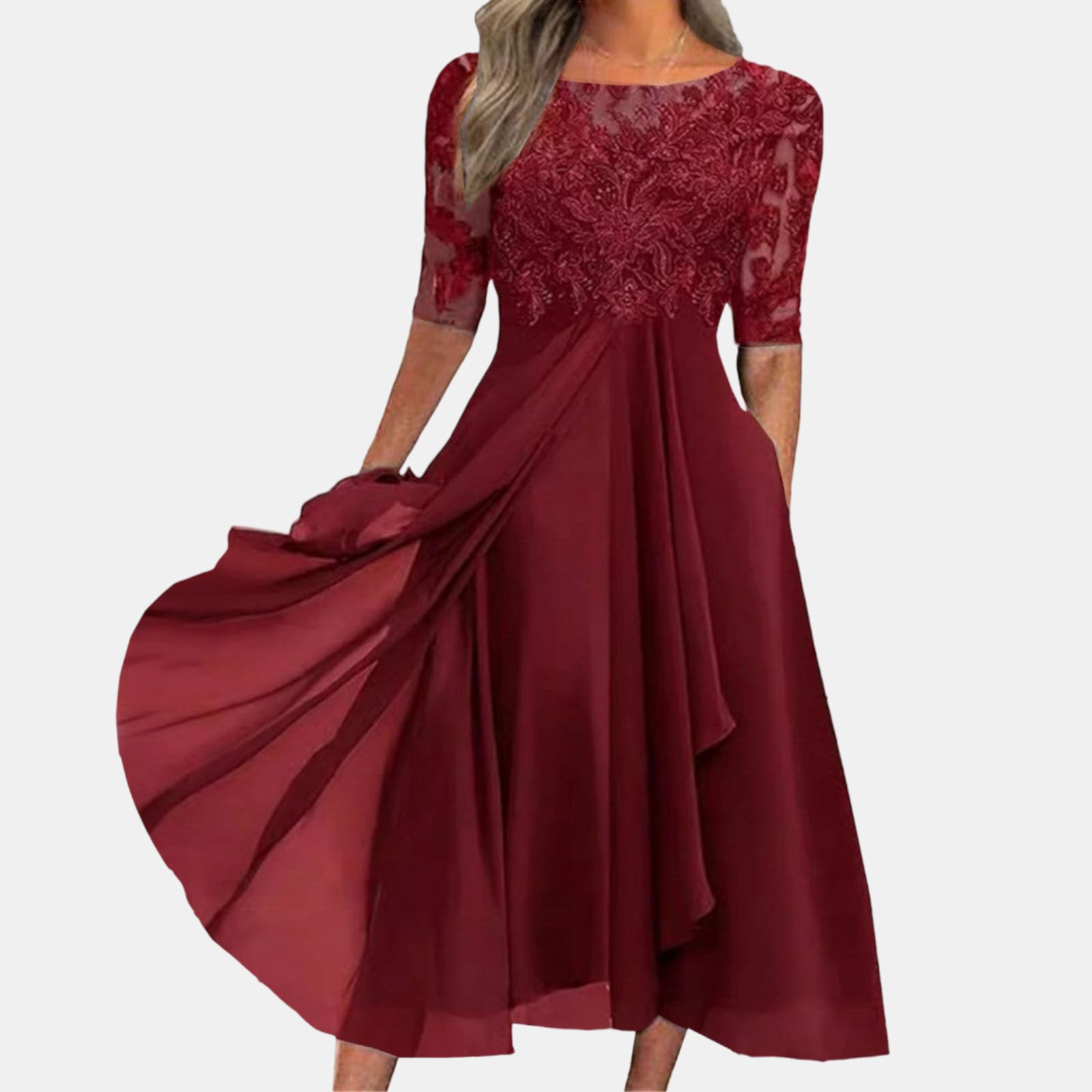 L'elegante abito in pizzo Rhonda™ è stato creato per i momenti importanti. Che stiate festeggiando un compleanno importante, partecipando a un matrimonio o semplicemente vogliate sentirvi splendide di sera, questo abito combina fascino senza tempo e comfort, perché l'eleganza non svanisce con il tempo, ma si rafforza.